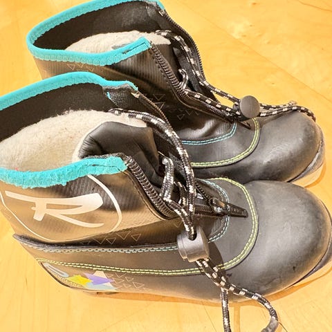 BARNESKI med lengde på 100 cm. Skiene er utstyrt med bindinger og leveres med matchende SWIX staver på 70 cm.