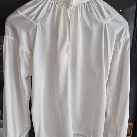 Har vært på min blå rogalandsbunad. Fin begie/champagnefarget med blomster på.
