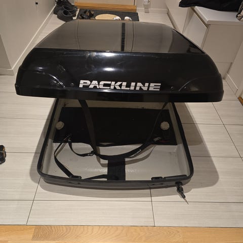 Packline takboks i hvit farge, med takbøyler, for en veldig lav og fin montering på Mini Countryman. Boks og bøyler kan selges separat. 5000kr for boks. 1000kr for bøyler.