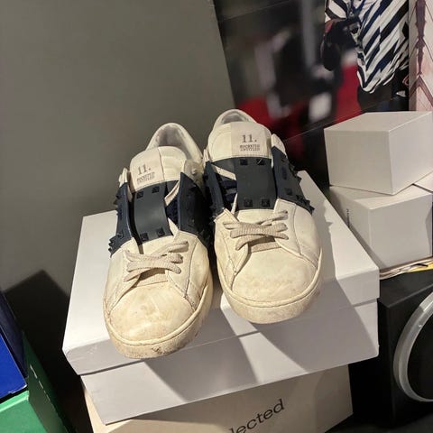 (GI BUD)Selger et par autentiske Valentino Garavani “Open for a Change” sneakers. Dette er en mer ettertraktet og litt sjeldnere variant av de klassiske Valentino-skoene, kjent for sitt ikoniske design. Skoene er laget i skinn og er svært komfortable på foten, noe Valentino er kjent for. Modellen er også veldig populær og lett å style – passer både til hverdags og mer pyntede antrekk. Skoene er brukt og har synlig slitasje, spesielt på tuppene og sidene på forsiden (se bilder), men dette er reflektert i eventuell pris. Fortsatt masse bruk igjen. Legges ut for å sjekke interesse. Disse er også Limited edition! Populær modell, original dustbag og lisser følger med😇 send meg en melding hvis det er noe du lurer på! (Er åpen for bud)
