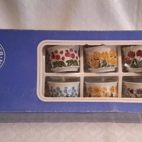 Tilstand: Pen vintage stand. Normal aldersrelatert slitasje, noe slitasje i gullkant og bruksspor i lysskålen (se bilder). Ingen kjente sprekker eller større skår.