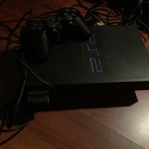PlayStation 2 m/ 2 kontrollere, 3 spill + HDMI-adapter