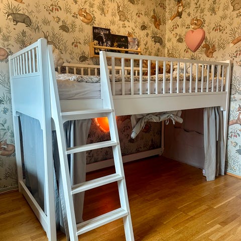 Vi selger vår halvhøye barneseng som har vært i bruk av ett barn. Sengen er solid, stabil og veldig praktisk, og har fungert veldig bra i hverdagen. Den gir god plass under sengen til oppbevaring eller lek, og passer perfekt til barnerom.
