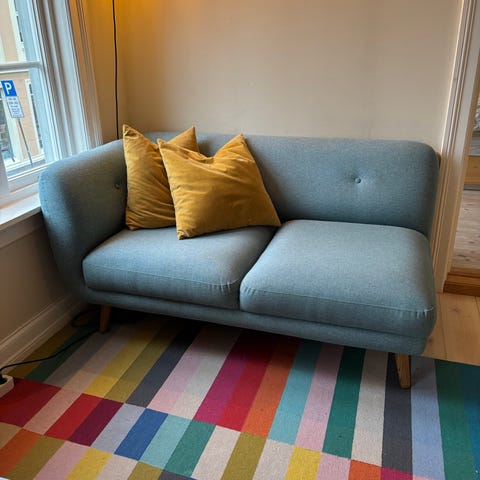 Pent brukt Stocksund lenestol fra Ikea i pent blått stoff. Røyk- og dyrefritt hjem.