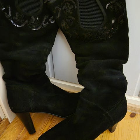 Knehøye elastiske boots i skinn.