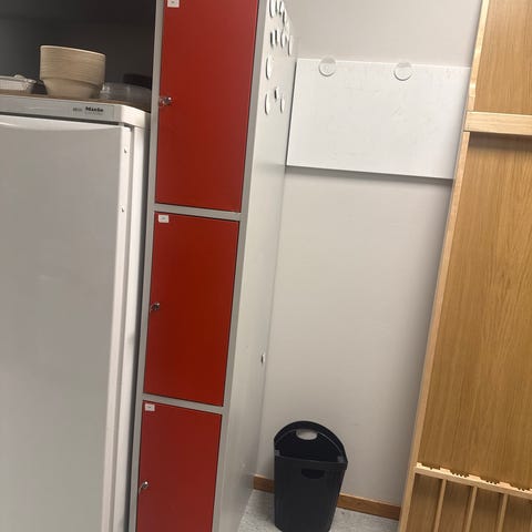 Visthus garderobeskap fra ikea, har byttet ut hyllene på venstre side med stang for bedre plass til oppheng.