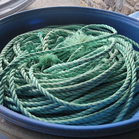 Noe godt brukt14-16mm flytetau ca 100 meter++ og det grønne ser nesten som nytt tror det er 14-16 mm. Stampen er med på kjøpet men uten lokk.