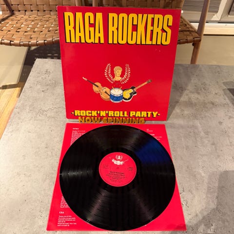 En eske med lp plater, singler og noe steinplater samt cd plater.