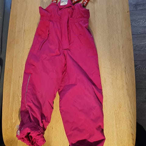 Kaura har elastisk midje med justering, elastikk nederst på bena og avtakbare fotstropper i silikon (opp til str. 110), som holder buksen godt på plass over støvlene"