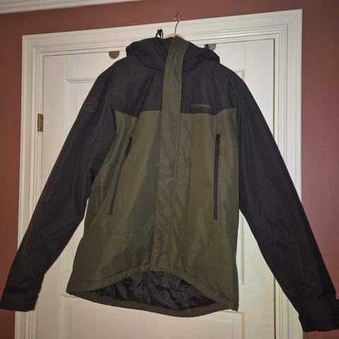 Stormberg vinterjakke for herre i størrelse L. Jakken er laget av polyester og har brun farge med sorte detaljer. Egnet for utendørs bruk i kalde forhold.