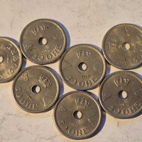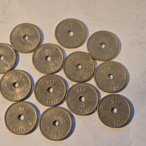 10 stk 50 øre 1939 kv01 eller bedre