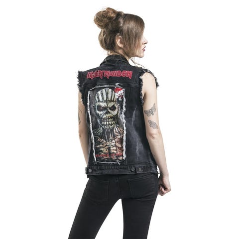 Lyseblå denimvest med kremfarget sherpa-fôr og krage. Knapper foran og lommer i bryst og sider.