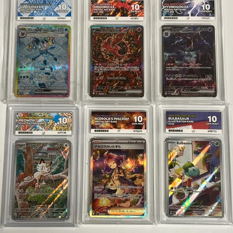 Graderte pokemon kort (slabs) fra PSA, CGC, ACE og BGS.