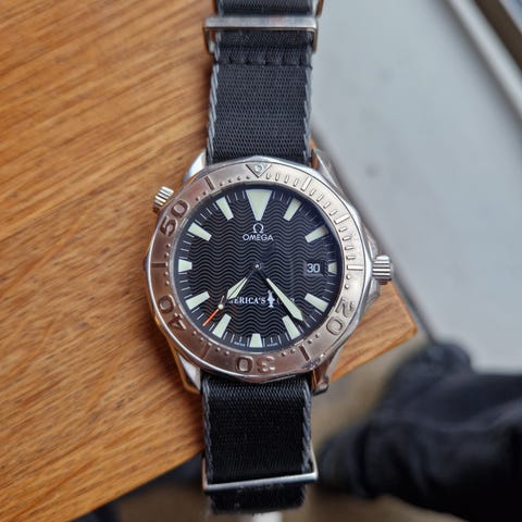 Selger min Omega Speedmaster Reduced (ref. 3510.50) fra 1996. Jeg har eid klokken i ca. 6–7 år, og den er pent brukt i denne perioden. Lenken har ikke vært i bruk i mitt eie, men det røde ytterlaget har begynt å flasse litt – trolig grunnet alder. Alligatorrem med original Omega foldespenne følger også med, og er forsiktig brukt.