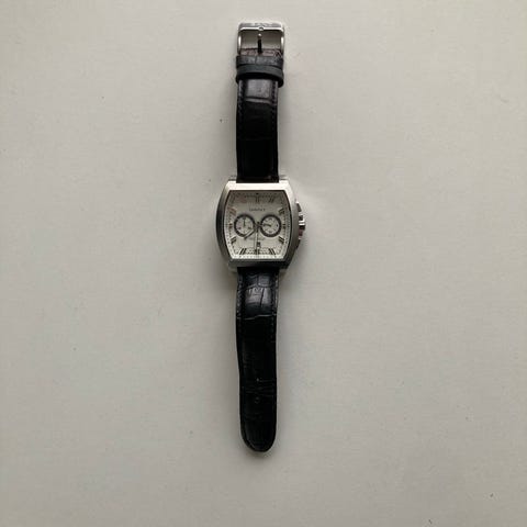 GANT herreklokke med svart urskive, datoindikator, og stållenkebånd.