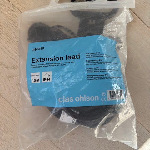 Vegg/hjørne skjøteledning, med 3 stikkontakter og 2 USB inganger og 2 ladder ledning inganger