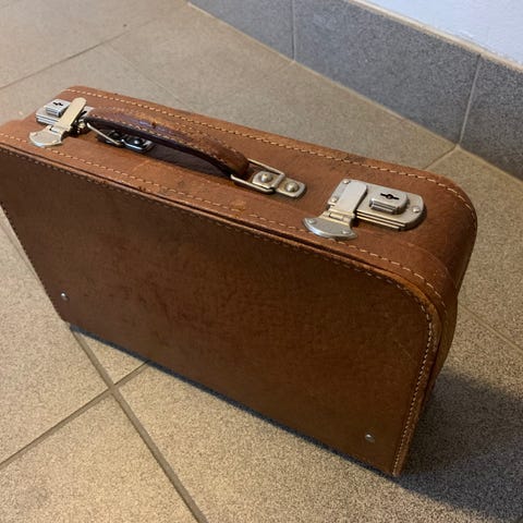 Lysebrun dokumentmappe / veske i ekte skinn. Brukt men meget velholdt. Passer til kontor, skole etc. Praktisk for bøker, Mac/PC etc. Håndtak og reim for skulder. Nypris 2.300,-