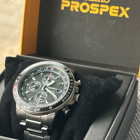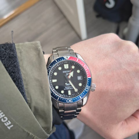 Selger en Seiko Prospex Solar Diver i veldig pen stand. Klassisk og populær modell med blå/rød “Pepsi”-bezel og safirglass. Robust dykkerklokke som passer like bra til hverdags som til fritid.