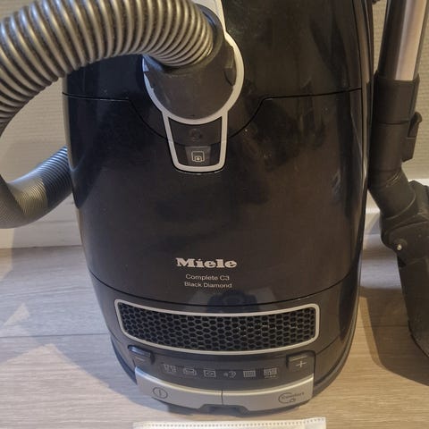 Miele Complete PowerLine C3 støvsuger i hvit farge. Modellen er utstyrt med slange, håndtak og diverse munnstykker. Egnet for rengjøring av gulv og andre overflater i hjemmet.