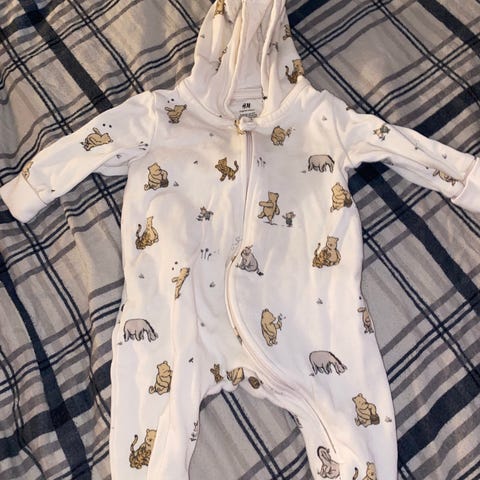 Helt ny ubrukt gul pysj med apekatter. På baksiden er det et stort hode av en apekatt som vist på bildet