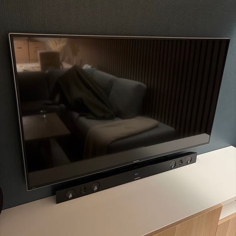 Det følger ikke med stativ eller veggfeste, og det følger heller ikke med strømkabel eller fjernkontroll. Fungerer som det skal, ser bra ut. Pris: 199 kr.