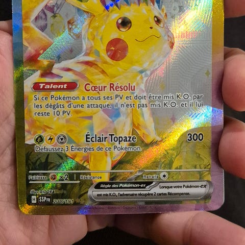 Pikachu ex 238/191 / Special Illustration Rare fra Surging Sparks. Kortet er 100% pack fresh, trukket av meg personlig og lagt direkte i sleeve og toploader. Fremstår som strøkent og i topp stand. Jeg er åpen for seriøse bud ved rask avgjørelse.