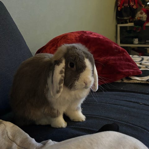 Smudge kaninen som er modell her, er litt større enn et marsvin.