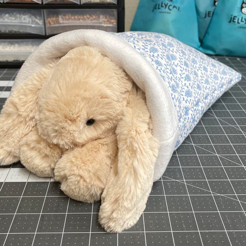 Søt kosetunell til marsvin eller dvergvedder/hermelin, med stabilisering i den ene åpningen, så den ikke kollapser selv om dyret ligger oppå tunellen og bruker den som seng🥰