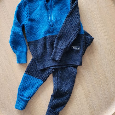 Bergans Ulriken sett i strl.80. Kjøpte to sett i 2023, men brukte kun ett av dem, så dette er med lapper og ubrukt. Helt nydelig, tykk 100% merinoull som er perfekt til mellomlag.