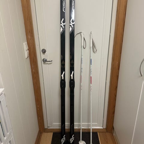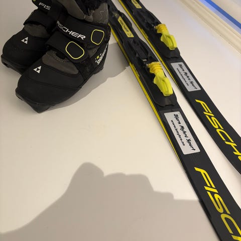 Fischer langrennsski med lengde 140 cm. Alpina skisko i størrelse 36 og staver ca. 110cm. Ski og sko er egnet for langrenn og vinteraktiviteter.