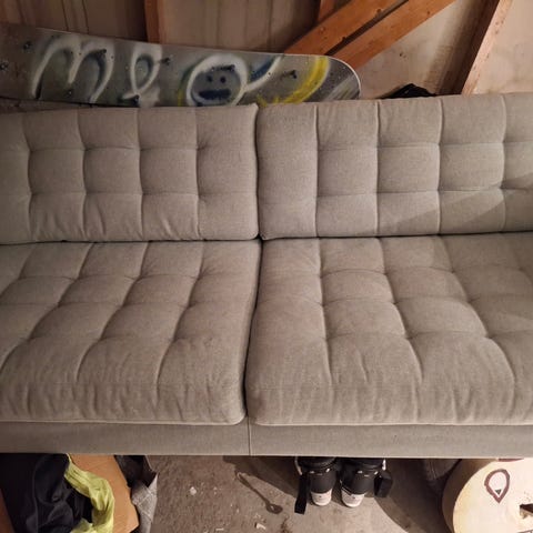 Selger denne sofaen grunnet at vi skal kjøpe ny. Den ble kjøpt i juni 2025. Det er ingen skader på den bare litt små slitasje ettersom vi har katt, anbefaler å rense den. Vi ønsker å bli kvitt den så fort som mulig😊