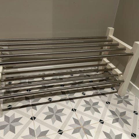 Pent brukt skohylle fra IKEA i modellen Tjusig. Svart treverk.