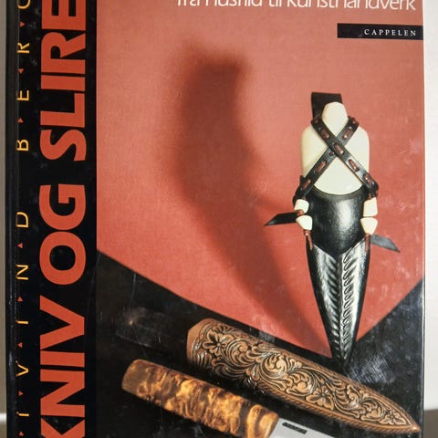 Øivind Berg: Kniv og slire. Fra husflid til kunsthåndverk. Grøndahl 1991. Boken er innbundet, små bruksspor, pen stand. Kan sende.