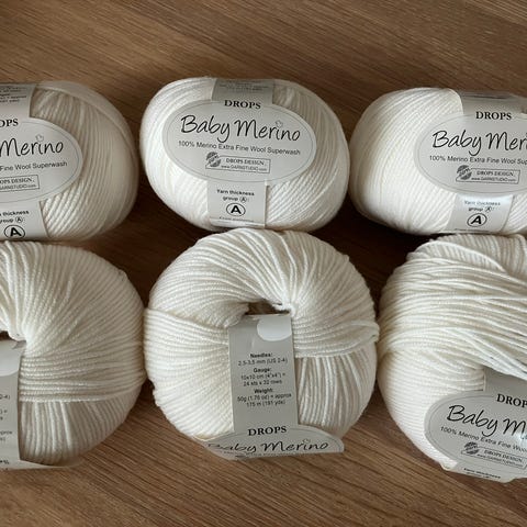 5 hele nøster pluss rester / nøster uten etikett.Perfekt om du strikker til f eks Amanda prosjektet