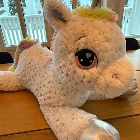 Stor hvit superfin enhjørningbamse. Vi fikk i gave til jul, men har for mange bamser og skal snart flytte.