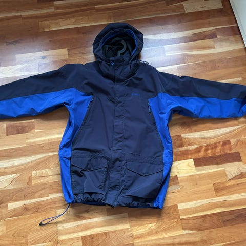 Bergans Myrkdalen jakke og Bafslo bukse i blå farge, størrelse M, laget av polyester. Jakken og buksen er designet for utendørs bruk med funksjonelle detaljer som glidelåser og hette på jakken. Jakken og buksen kan festes sammen med glidelås. Passer for menn.