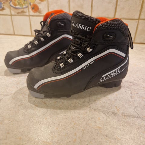 Alpina Frost Girl langrennssko i størrelse 34. Skoene er i svart og rosa farge med snøring og borrelås for justering. Passer for barn og unge. Skoene har en såle tilpasset langrennsski med feste for bindinger.