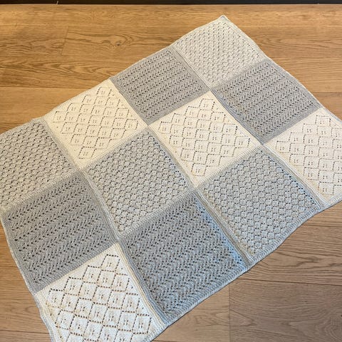 Hjemmestrikket vognteppe/ babyteppe i flettemønster