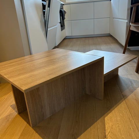 Pent sofabord i lyst heltre eik. Fremstår som i god stand uten spesielle hakk eller merker.