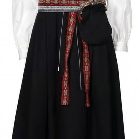 Komplett festdrakt i ullblanding med skjorte, belte og veske.