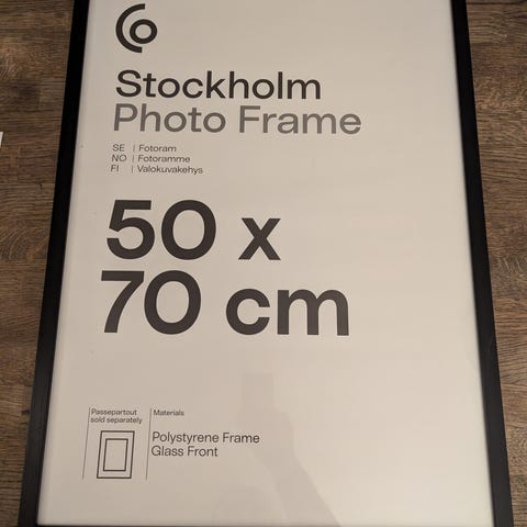 Clas Ohlson bilderamme med størrelse 21 x 30 cm. Rammen er svart og laget for å holde bilder på denne standardstørrelsen.
