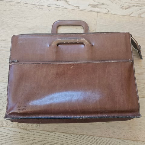 Vintage, bag, veske, leather, brun, brown, power woman, power man, business.