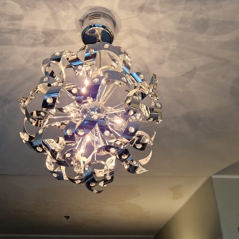 Selger en sort taklampe med store pærer og det som er nødvendig av montering/skruer for å henge den opp. Den ene pæren lyser litt svakere enn de andre, men fungerer.