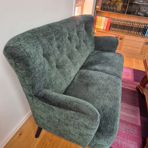 Evt 2500,- for sofa og 500,- for puffen