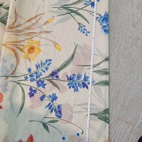 Fargerikt blomsterprint i førsteklasses bomullskvalitet, fra Canada. Stoffet egner seg perfekt til gardiner, puter, duker, syprosjekter og interiørdetaljer som trenger et frisk og livlig uttrykk. Kr 200 pr. Høyde stoff, (har 4 høyde stoff) selges samlet, ferdig prutet. Kan sendes med Postnord men kjøper betaler porto (Porto + kr 100 ).