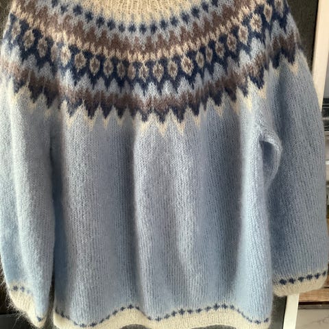 Helt ny blå bomulls strikket genser selges 200,- perfekte genseren til vår/sommer.