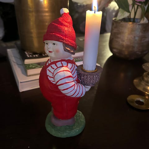 Lysestakefigur med julenisse ved peisen (telys bak peisen) 🤩