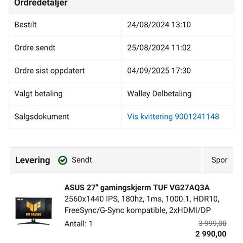 Varen sendes til deg, og du har 24 timer til å inspisere den før pengene overføres til selgeren.