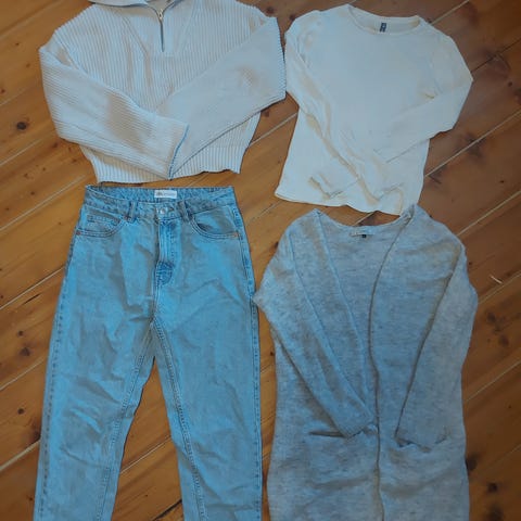 Selger diverse klær i str S, men de som er i M er også en S. Klærne er fra NY, Jean Paul og Vavite.