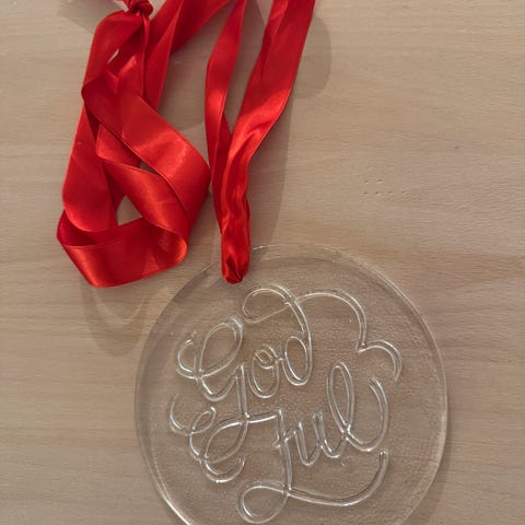 Hadeland Glassverk solfanger fra 1984. Rundt ornament med innpreget snøflakdesign og årstall 1984.